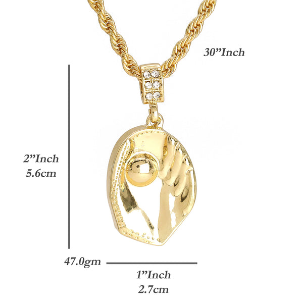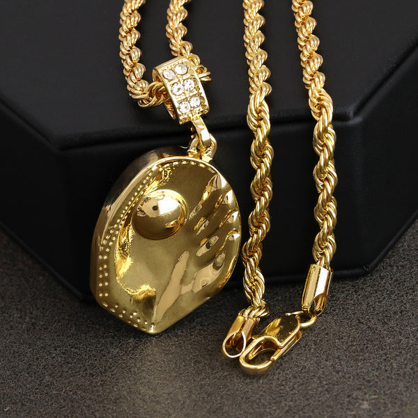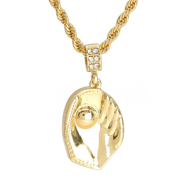 Baseball Glove Catch Ball Pendant 30" Rope Chain Hip Hop Style 18k Gold Plated