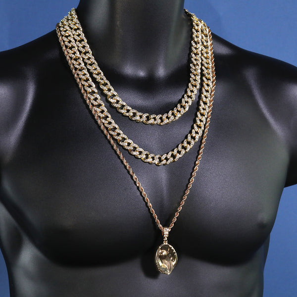 Chain Size: 4mm/30" Pendant Size: Weight: 45.3g Grams Measurements: 5.3cm x 2.6cm This Pendant hanging from a 4mm 30" Rope chain . Each and every stone on this pendant is prong set, same as...
