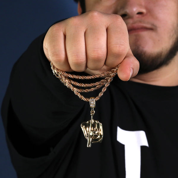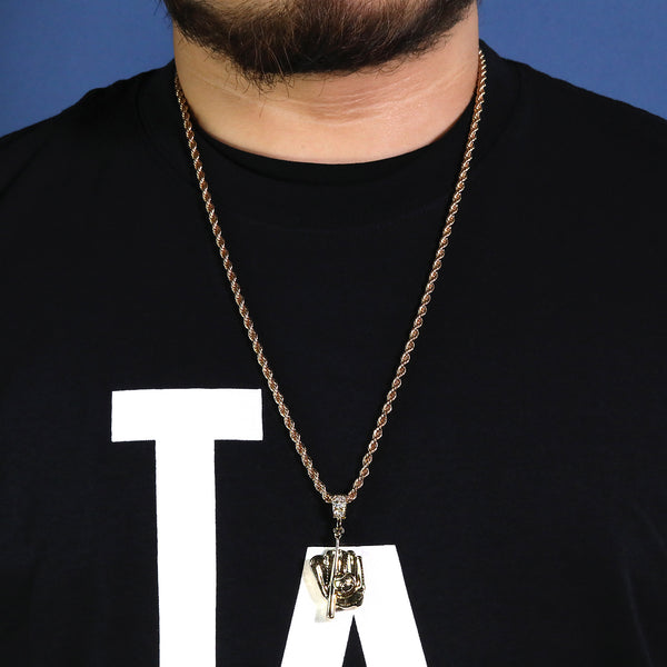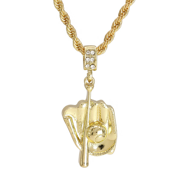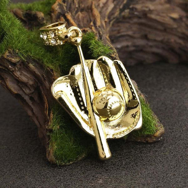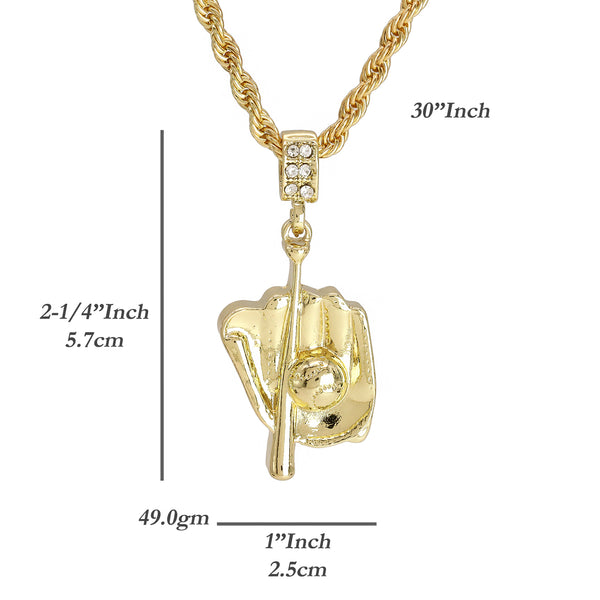 Baseball Glove Mitt Bat Pendant 30" Rope Chain Hip Hop Style 18k Gold Plated