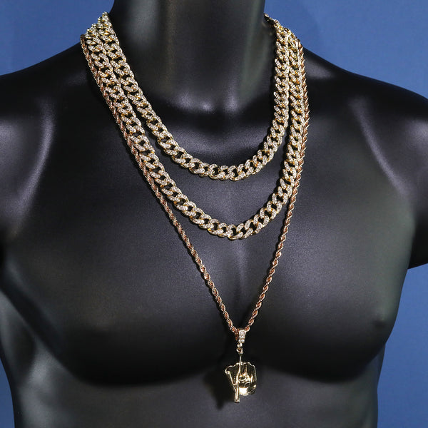 Chain Size: 4mm/30" Pendant Size: Weight: 45.3g Grams Measurements: 5.3cm x 2.6cm This Pendant hanging from a 4mm 30" Rope chain . Each and every stone on this pendant is prong set, same as...