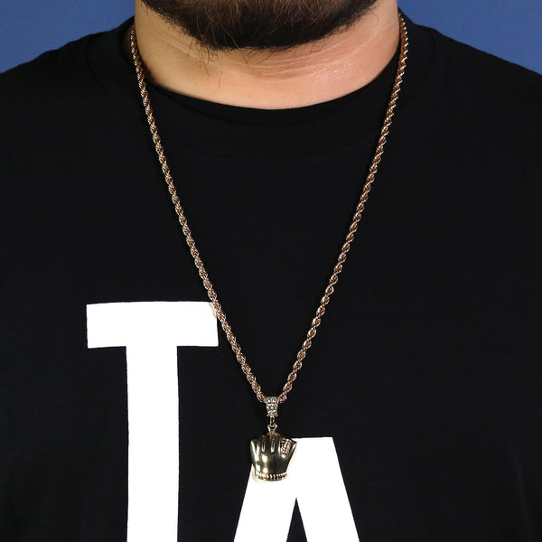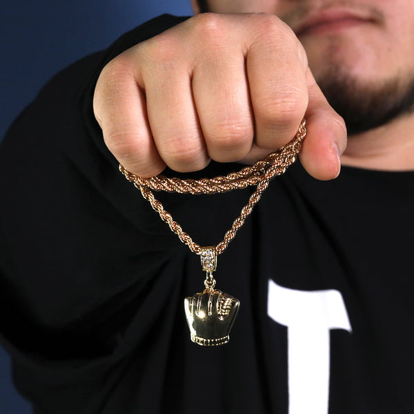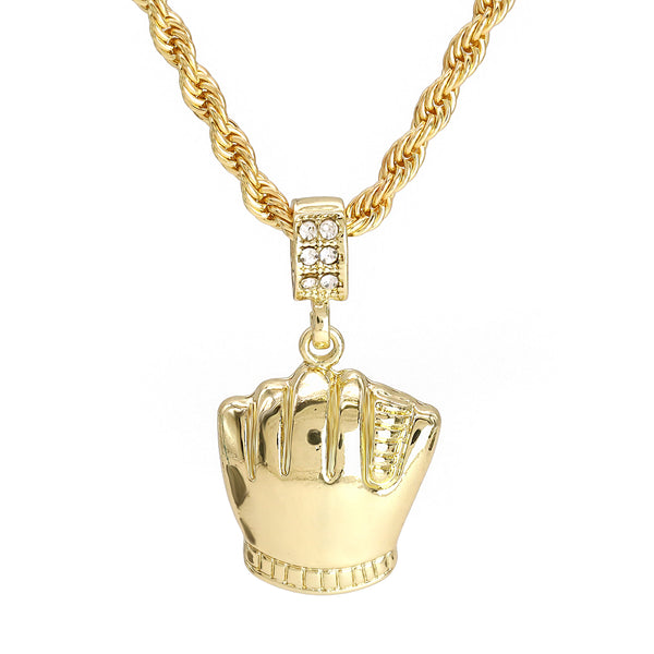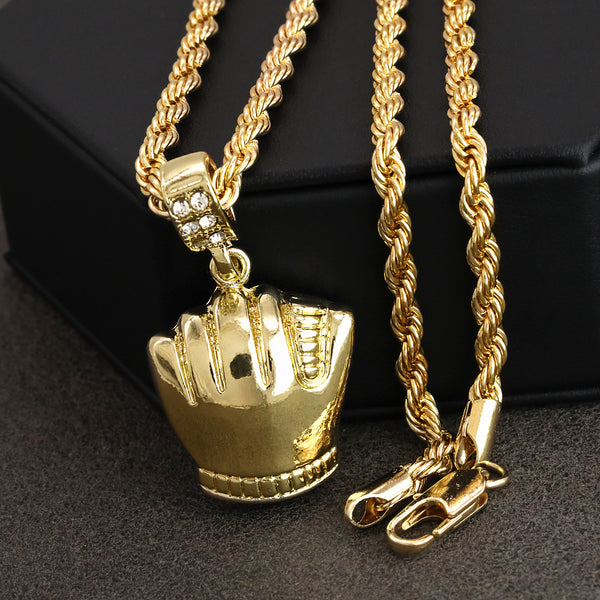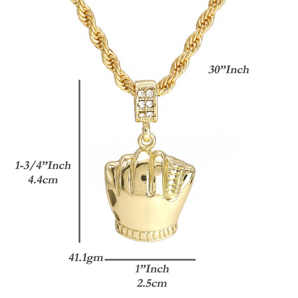 Baseball Glove mitts Pendant 30" Rope Chain Hip Hop Style 18k Gold Plated