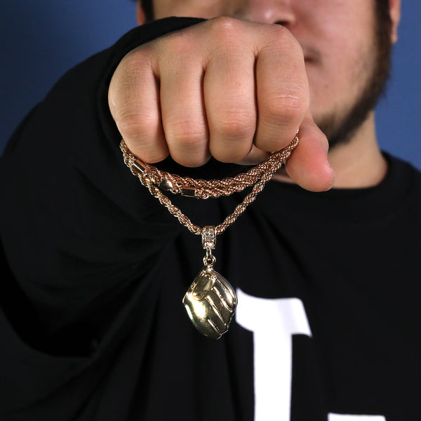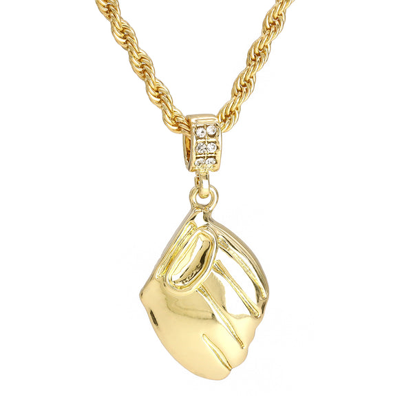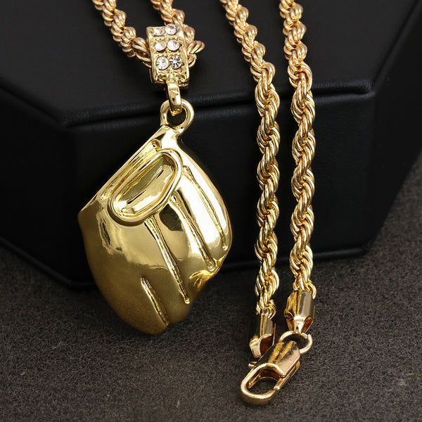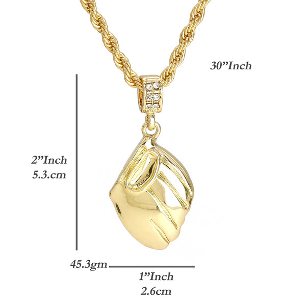 Baseball Glove Pendant 30" Rope Chain Hip Hop Style 18k Gold Plated