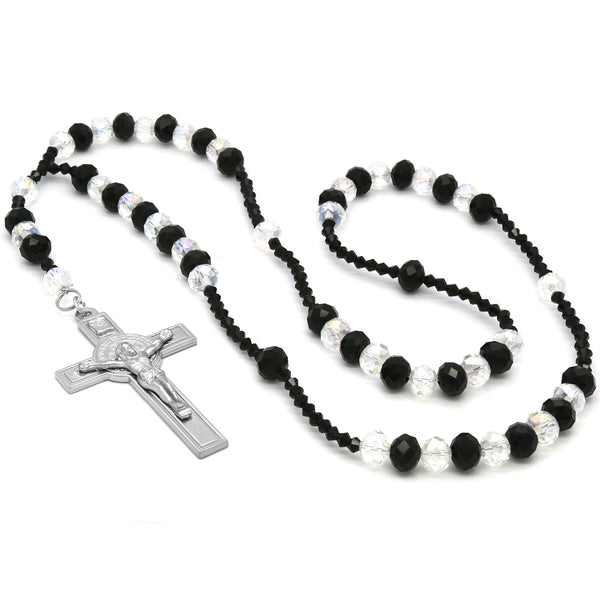 Black/Clear Crystal Beads Rosary With Jesus Middle & Cross Pendants Fashion Religious Jewelry Necklace that fit for all, Men, Women, Boy or Girl Each Bead of the Necklace is Carefully checked Before...