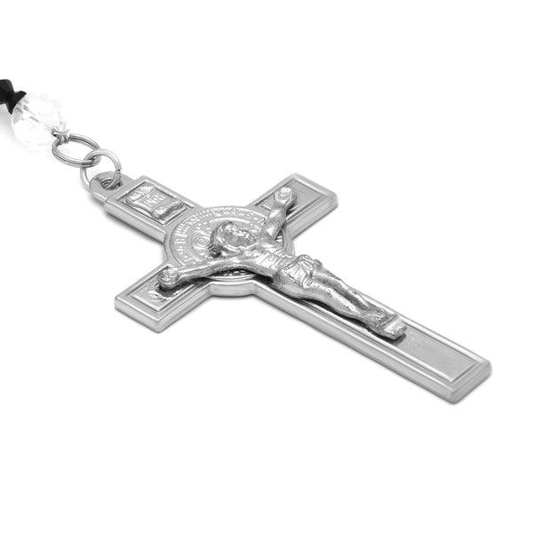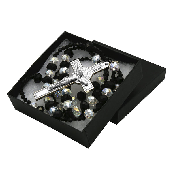 Black/Clear Crystal Line Rosary With Cross Pendant