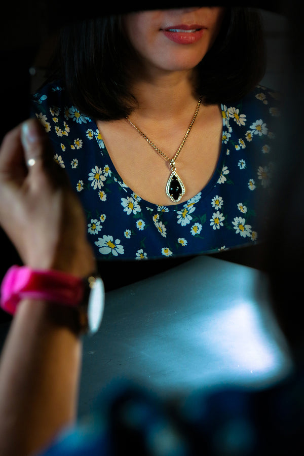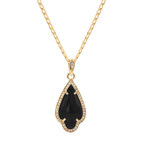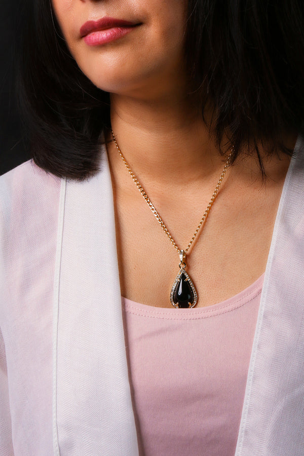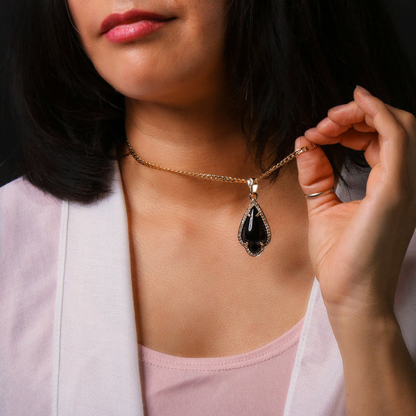 Black Curved Tear Women's Jade Chain Pendant Necklace