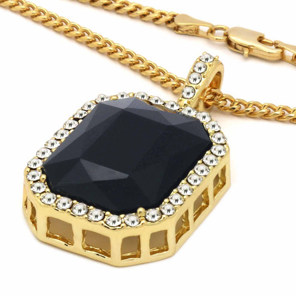 Hip Hop Bling 14K Gold Filled Necklace Pendant 14K Gold Filled Iced Out Black Onyx and Lion Hip Hop Pendants with 2 mm 24"/30" Cuban Chain Gold Filled Over Brass Makes this...