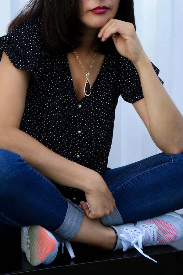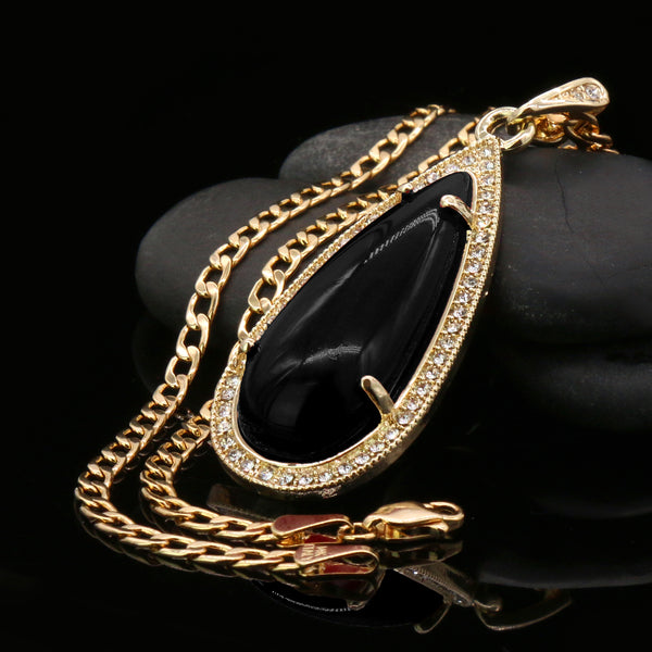 Black Tear Women's Jade Cuban Chain Pendant Necklace