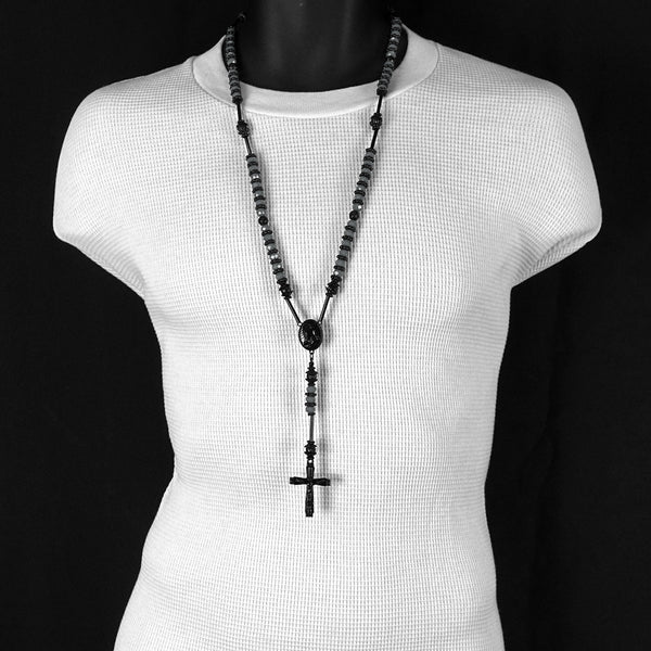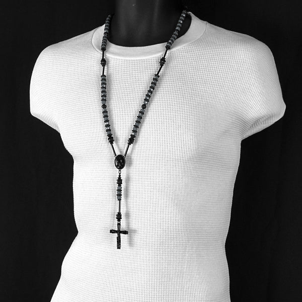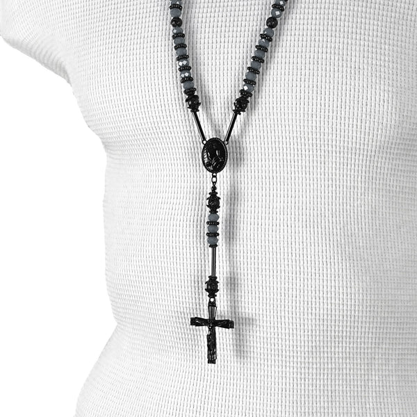 Gray black Crystal Beads Rosary With PRAYER & Cross Pendants Fashion Religious Jewelry Necklace that fit for all, Men, Women, Boy or Girl Each Bead of the Necklace is Carefully checked...