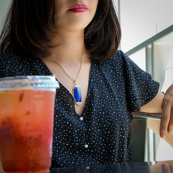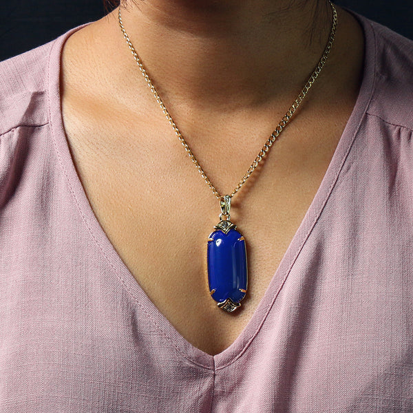 Blue Cylinder Women's Jade Chain Pendant Necklace