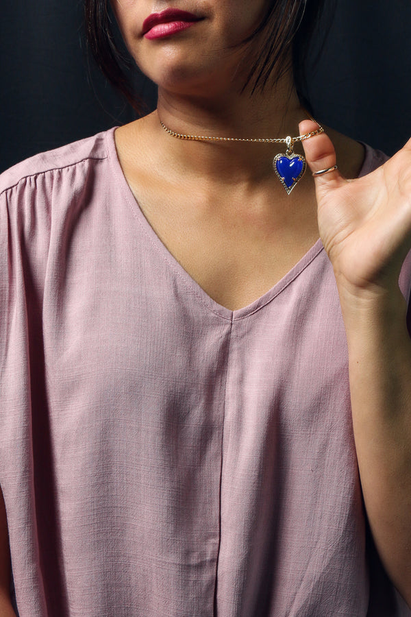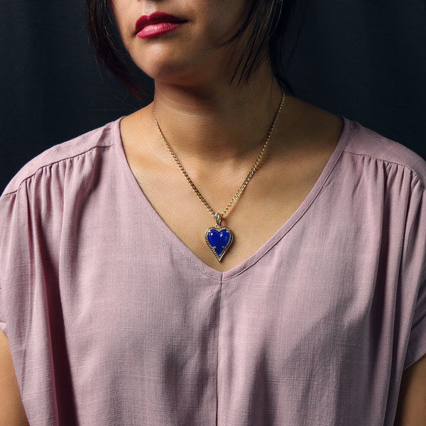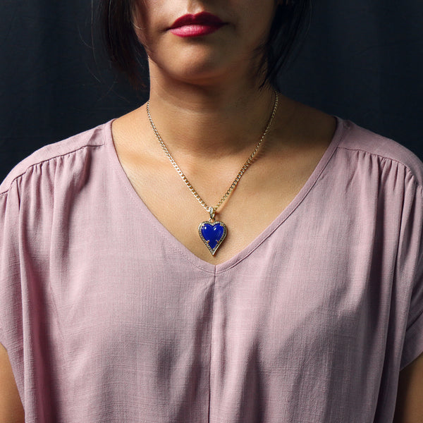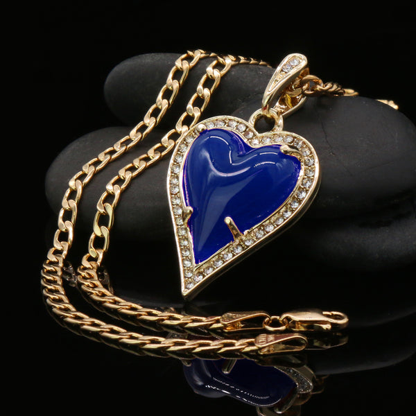 Blue Heart Women's Jade Chain Pendant Necklace