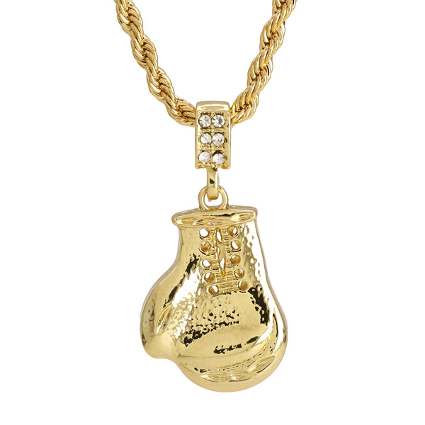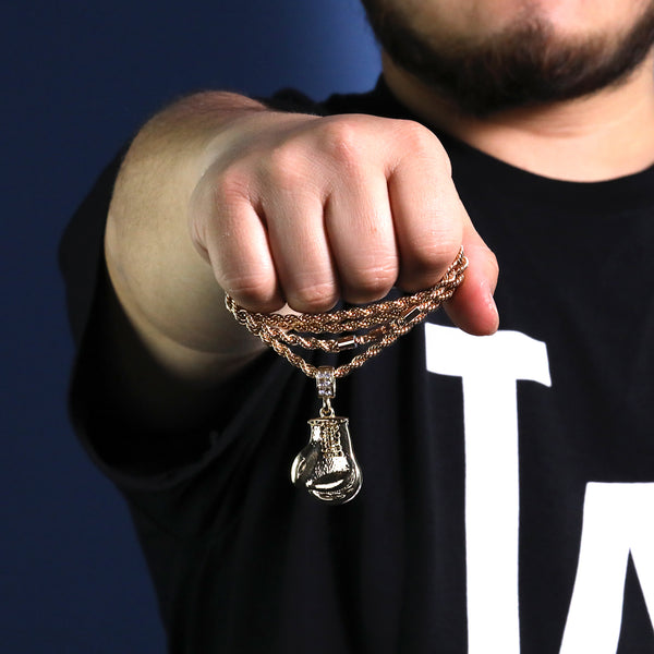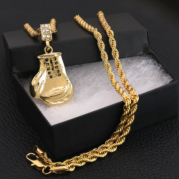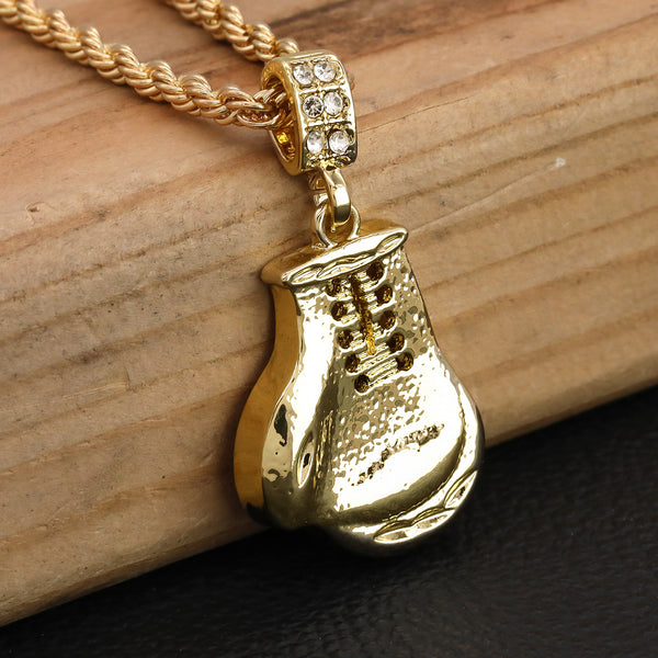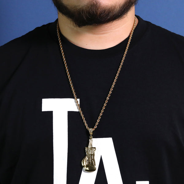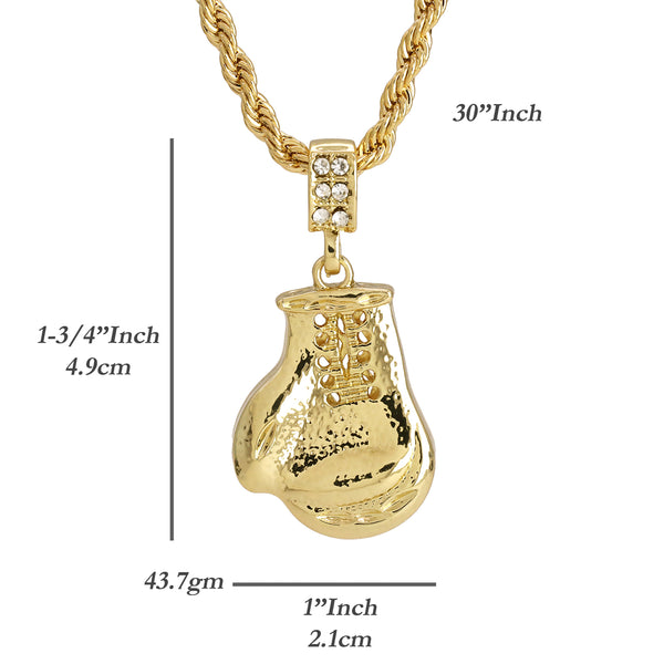 Boxing Mitt Glove Pendant 30" Rope Chain Hip Hop Style 18k Gold Plated