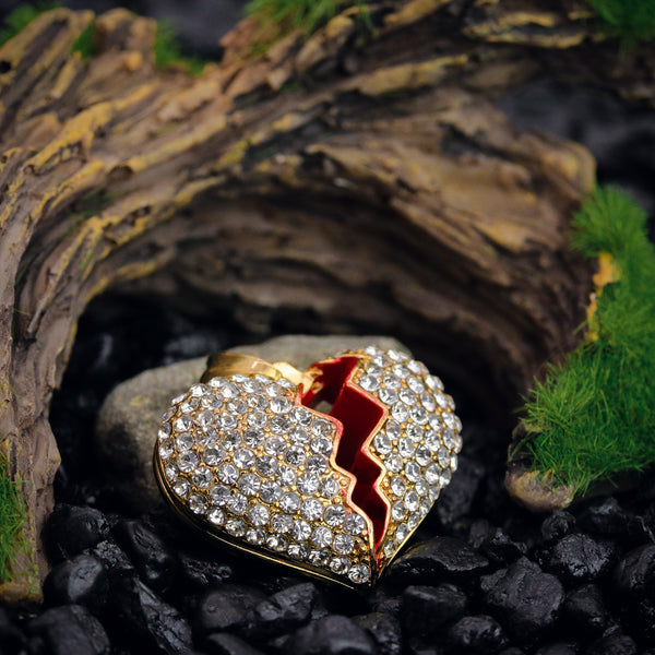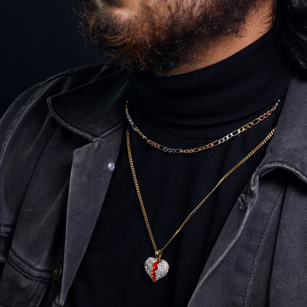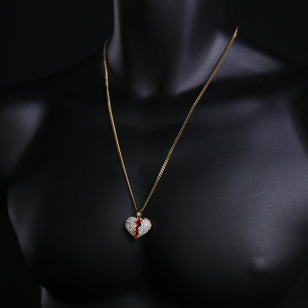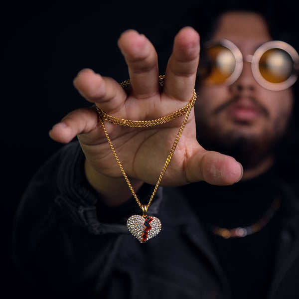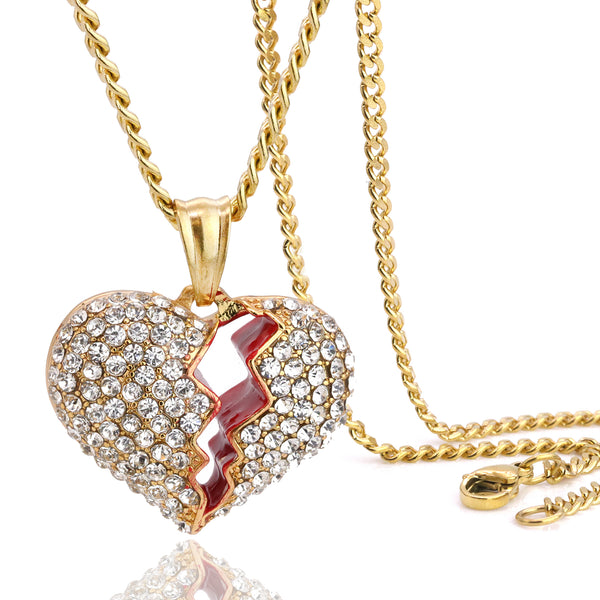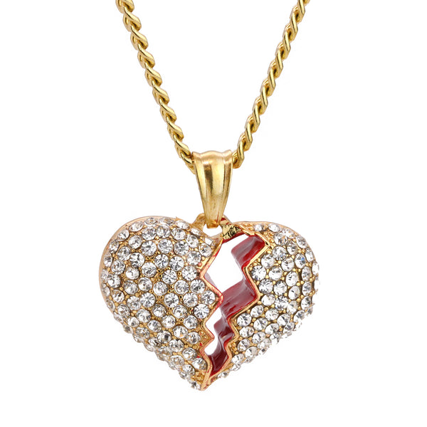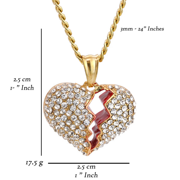 Broken Heart Pendant 24" Cuban Chain Hip Hop Style 18k Gold Stainless Steel