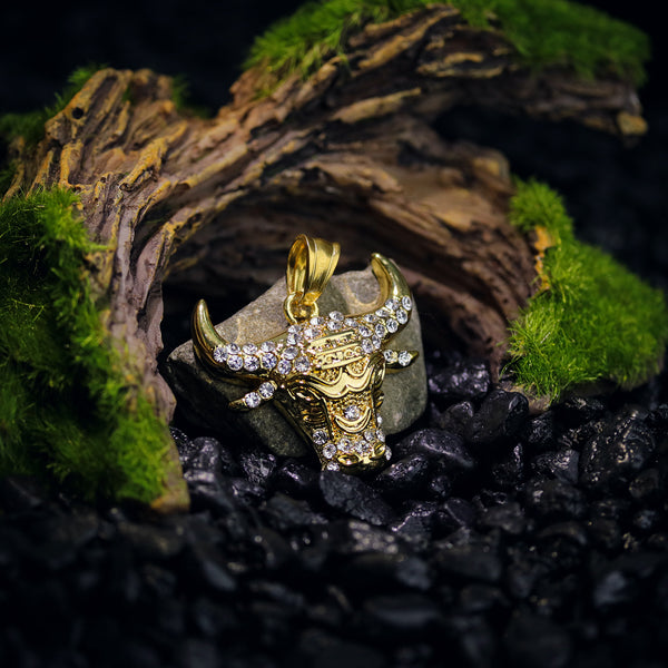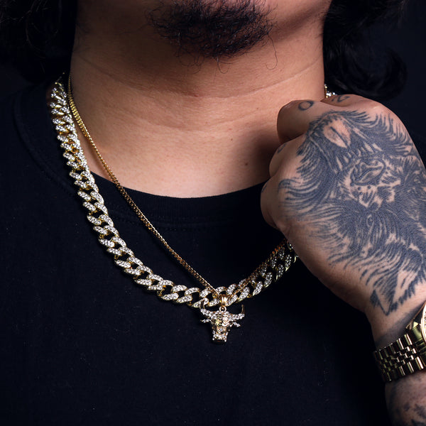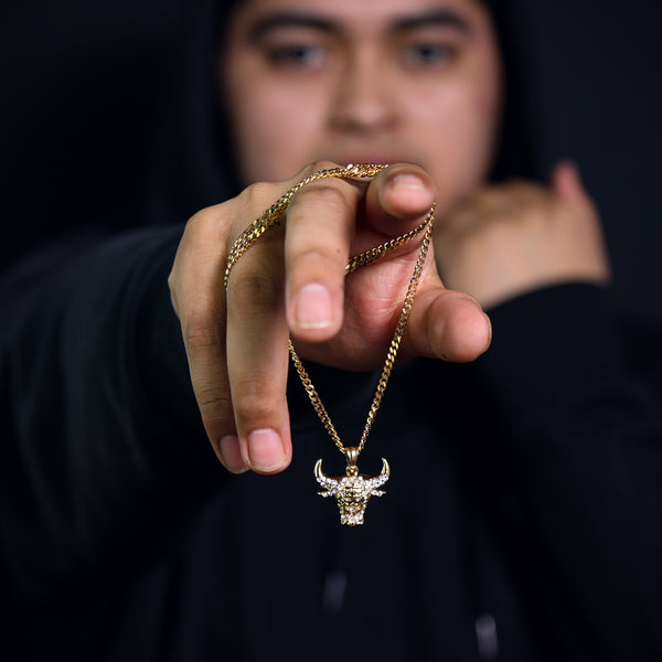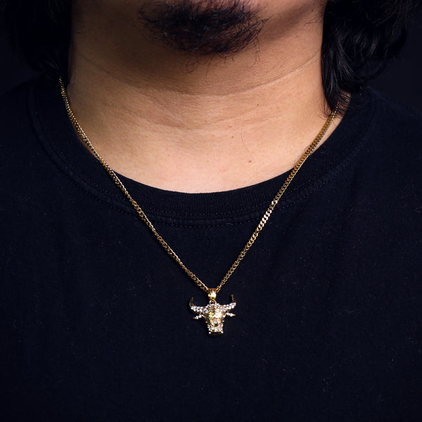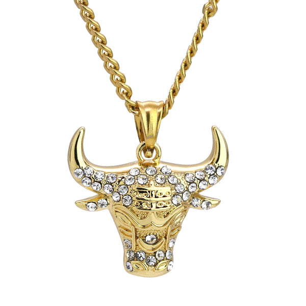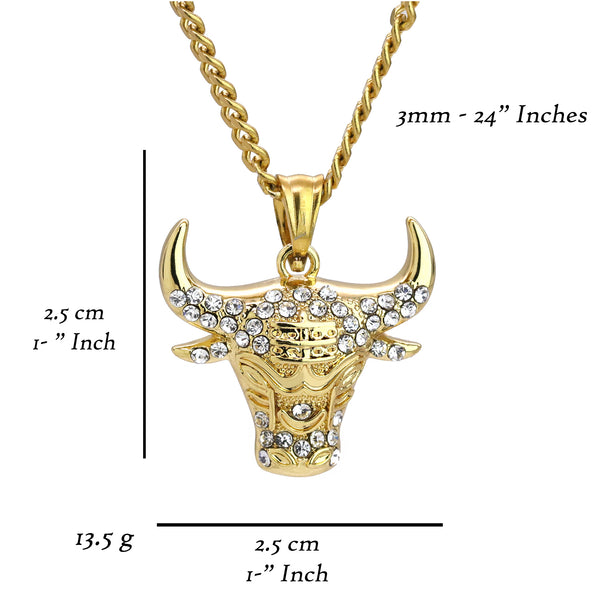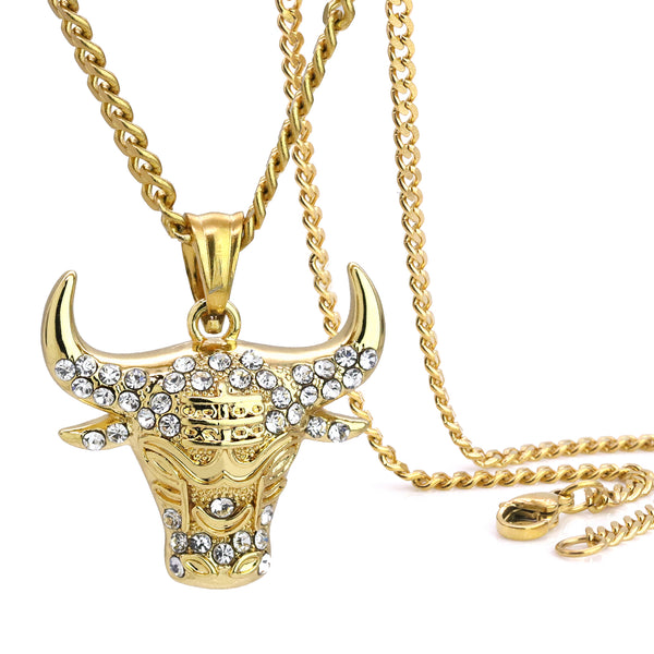 Bull Head Pendant 24" Cuban Chain Hip Hop Style 18k Gold Stainless Steel