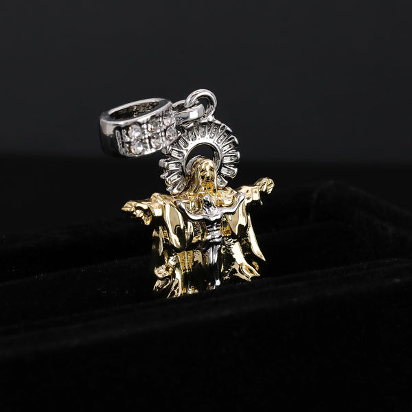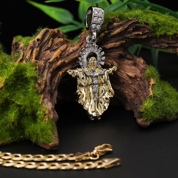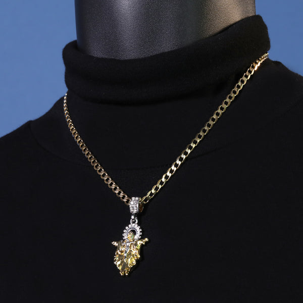 Catholic Guadalupe & Jesus Pendant Cubic-Zirconia Gold Plated 18" Cuban Chain