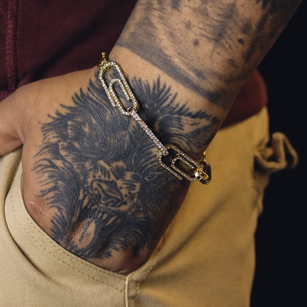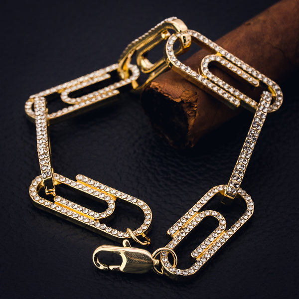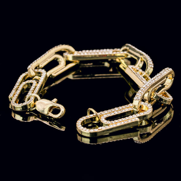 Clip Bracelet Link Fully Iced 14k Gold Plated 9" Lobster Clip