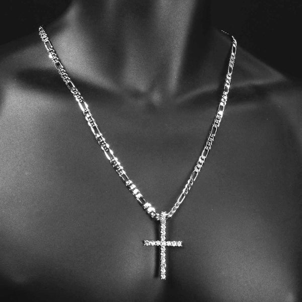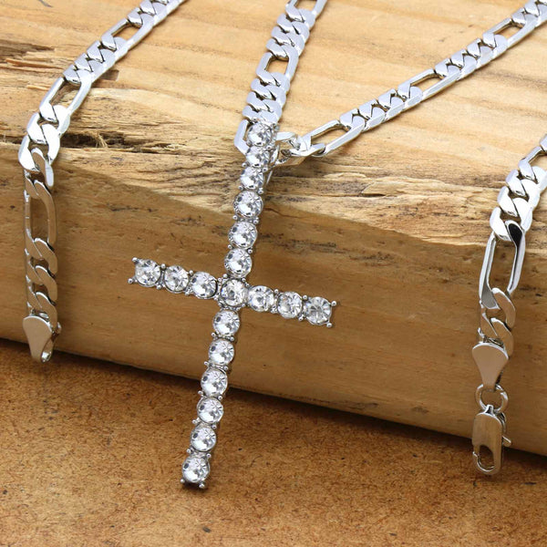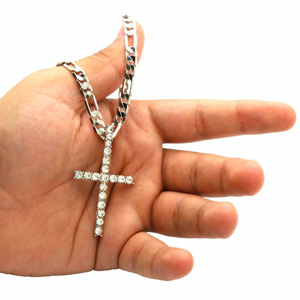 Color: Silver Size: Pendant--50 mm X 30 mm / Chain--5 mm 24"Inches Hip Hop Bling 14K Real White Gold Filled Necklace Pendant 14K Whte Gold Filled Iced Out Cross Hip Hop...