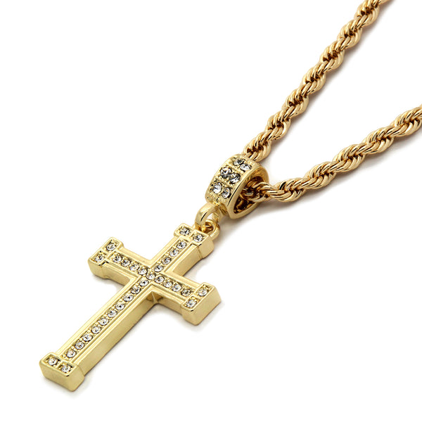 Cz Staple Edge Cross Pendant Necklace