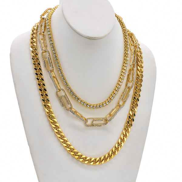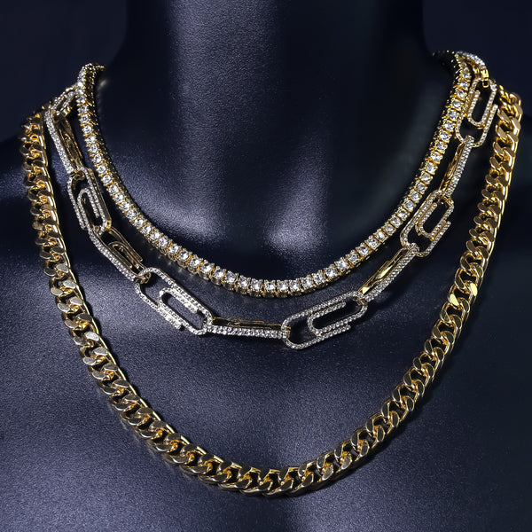 Copy of 14k Chain 3pcs Bundle 18" Tennis Choker 20" Paper Clip Link & 24" Miami Cuban Chain