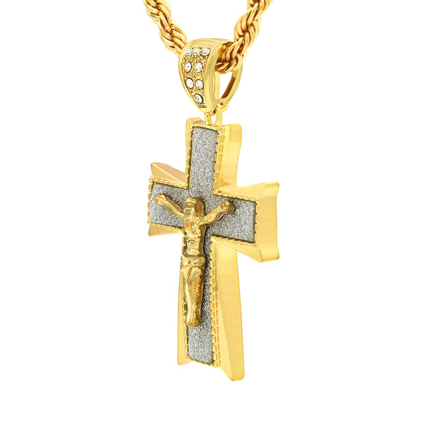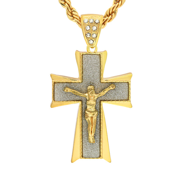 Copy of 14k Gold Filled Stardust Jesus Hang Cross Pendant with Rope Chain