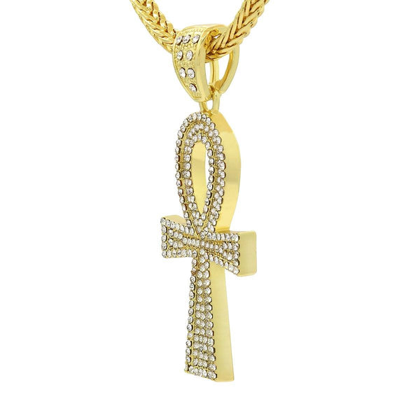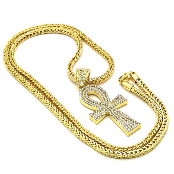 14k Gold Filled Ankh Cross Pendant with Franco Chain