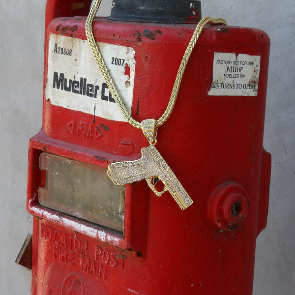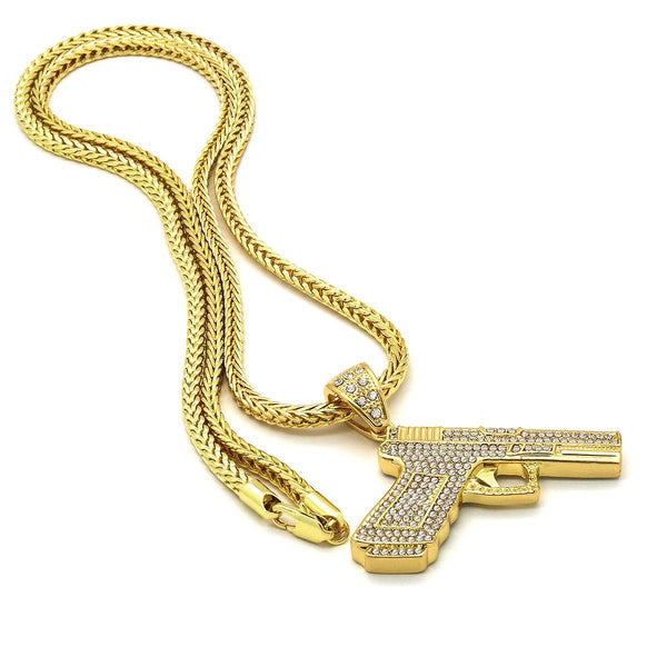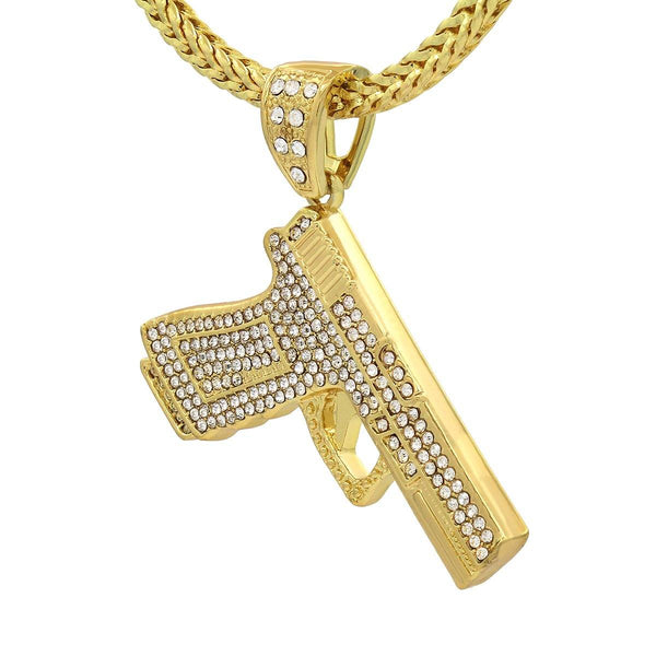 14k Gold Filled Hand Gun Pendant with Franco Chain