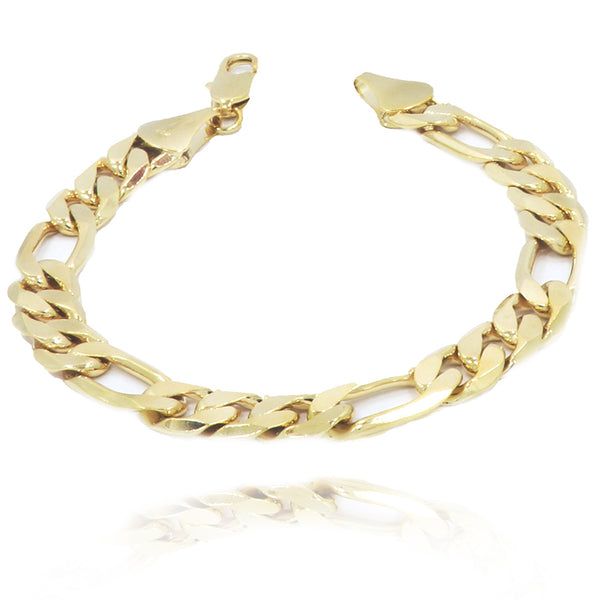 11MM/9"INCHES 14K GOLD FINISH WIDE FIGARO LINK BRACELET
