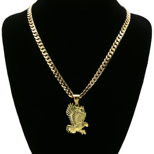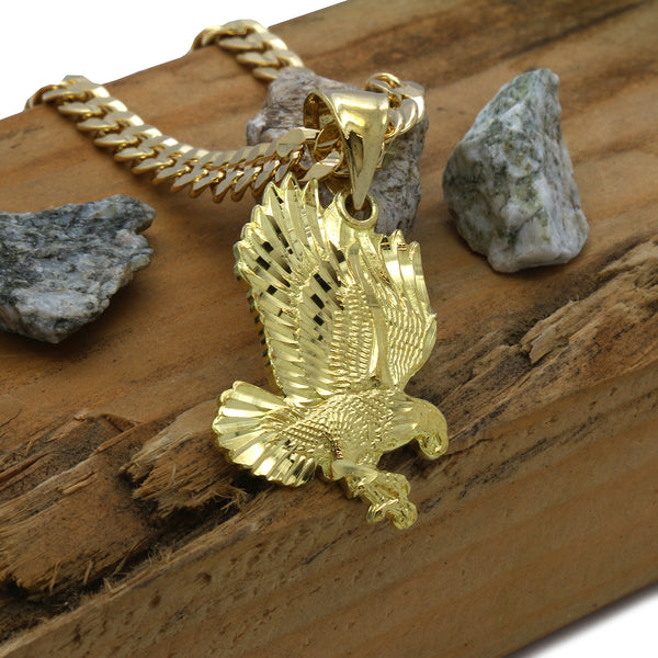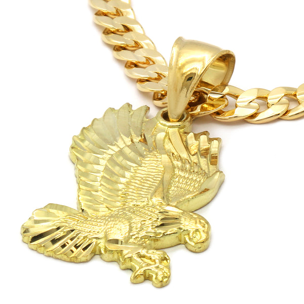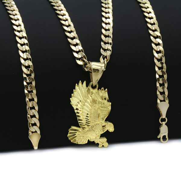 14K Gold Filled Small Necklace Pendant 14K Gold Filled EAGLE Pendant with 5mm 24" CUBAN Chain Gold Filled Over Brass Makes this Necklace Look & Feel as a Real Gold...