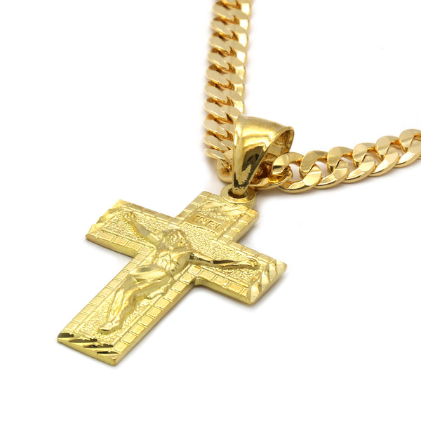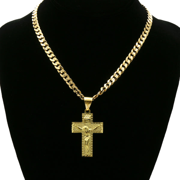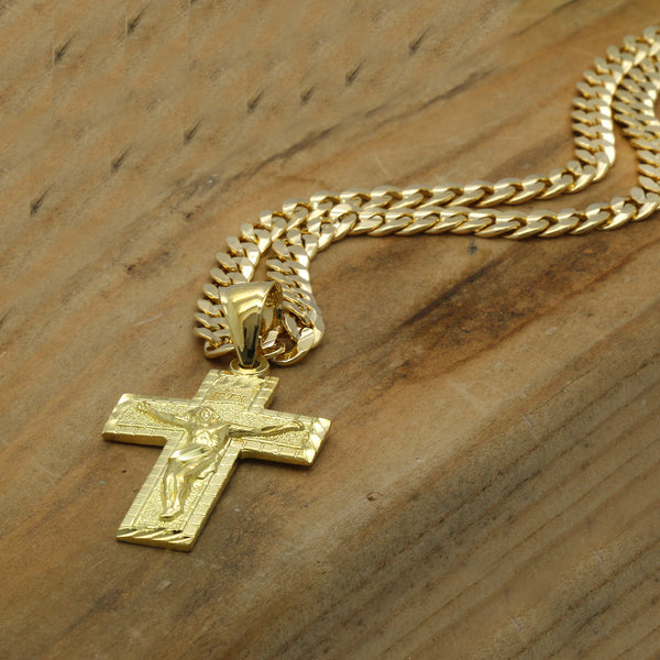14K Gold Filled Necklace Pendant 14K Gold Filled SM ETCHED CROSS Pendant with 5mm 24" CUBAN Chain Gold Filled Over Brass Makes this Necklace Look & Feel as a Real Gold...