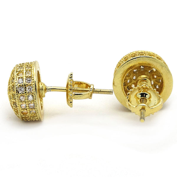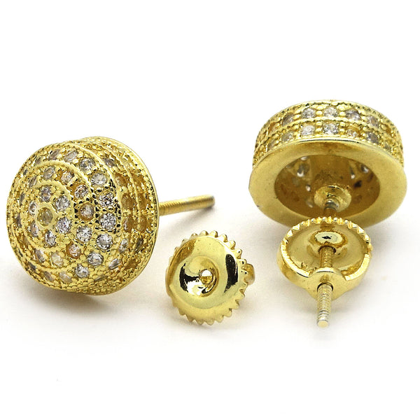 Circle Iced Out Dome Gold Filled and Cubic Zirconia Earring Measurements: 14mm Pierced Stud Earrings Screw backs To Make You More Shiny and Confident. Wherever You Go, The EARRINGS Makes...
