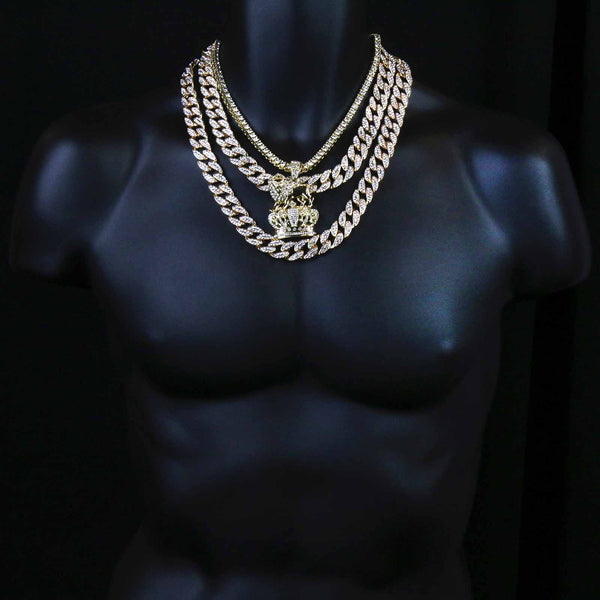 The BlingKingStar Tennis/Cuban Choker Set pays tribute to the multi use trend rooted by prominent hip hop artists And Sport Stars. Each choker is plated with a 14K Gold finish...