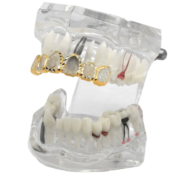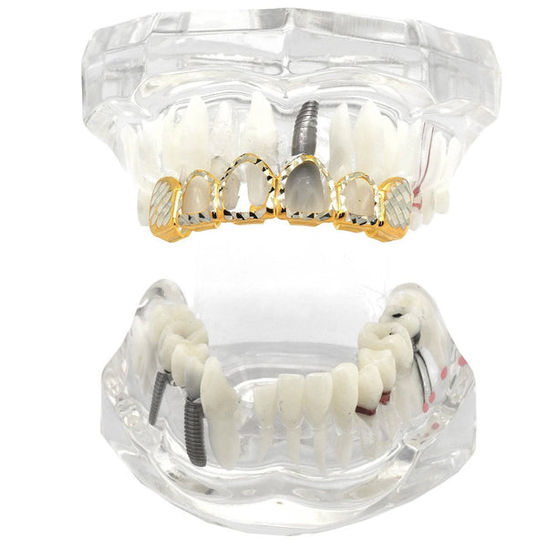 2 TONE TOP GRILLZ 4 OPEN DIAMOND CUT