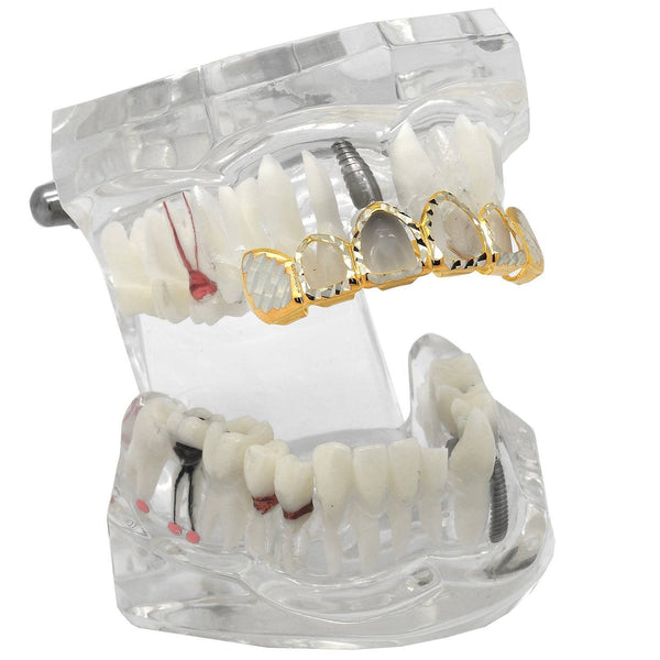 These Gold plated diamond cut Top Grillz are the perfect addition to your smile. The diamond cuts give it a unique shine but not over the top flashy. Molding silicone bar and...