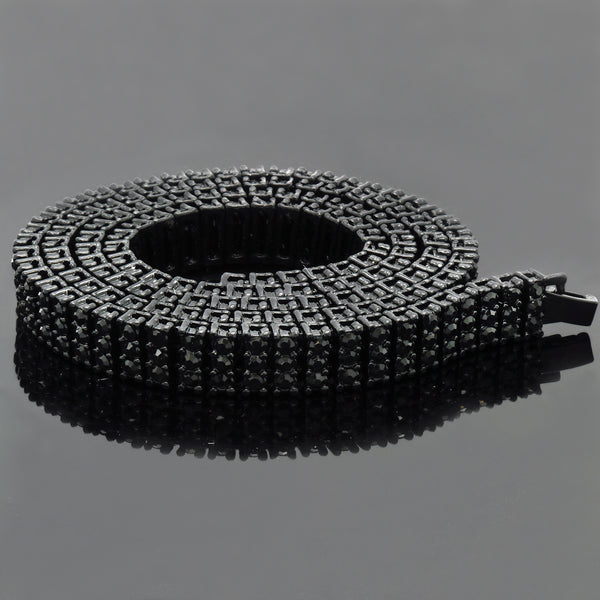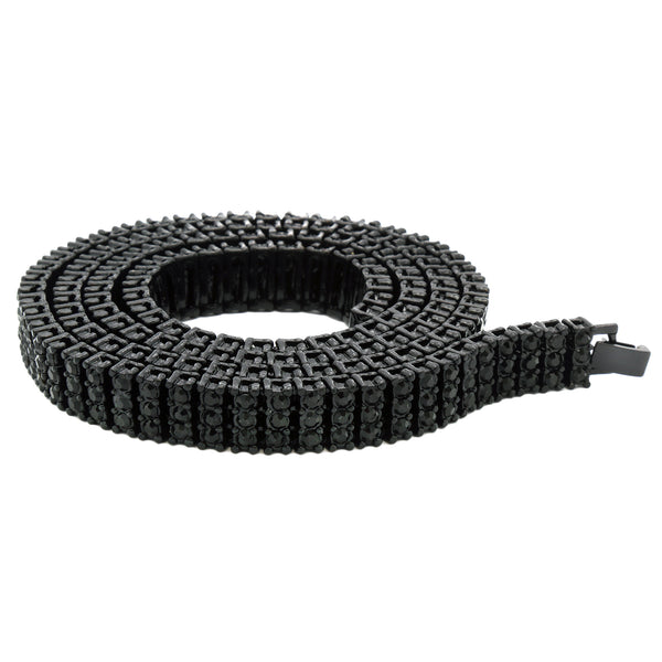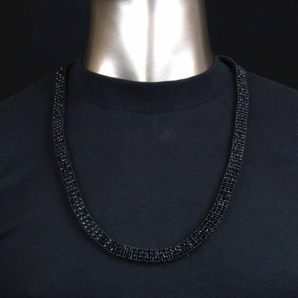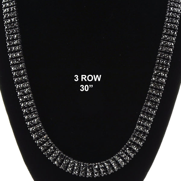 3 ROW ICED-OUT TENNIS BLACK CHAIN 30"