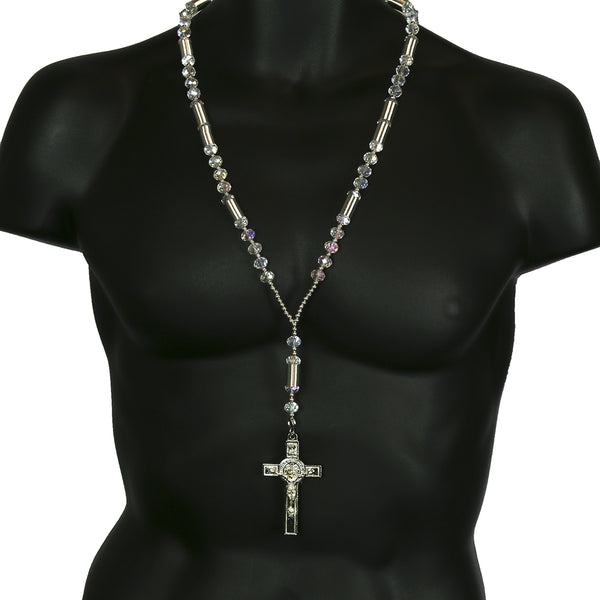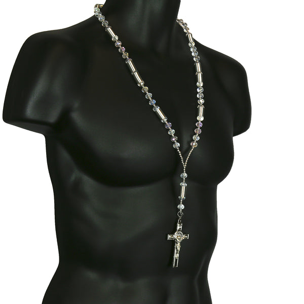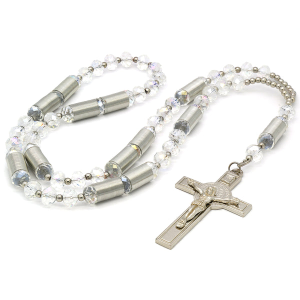 Clear Crystal Beads Rosary With  Cross Pendants Fashion Religious Jewelry Necklace that fit for all, Men, Women, Boy or Girl Each Bead of the Necklace is Carefully checked Before Attached to...