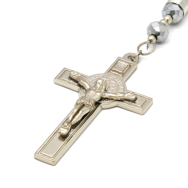 8MM Silver Crystal Rosary With Cross Pendant