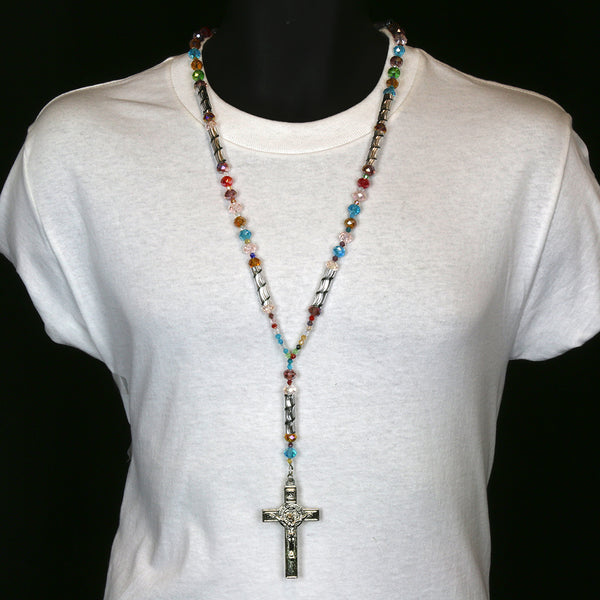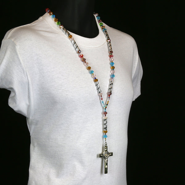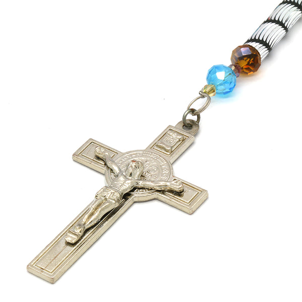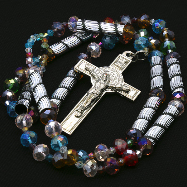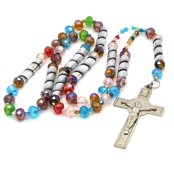 8MM Multi Color Crystal Rosary SanBenito Cross Pendant