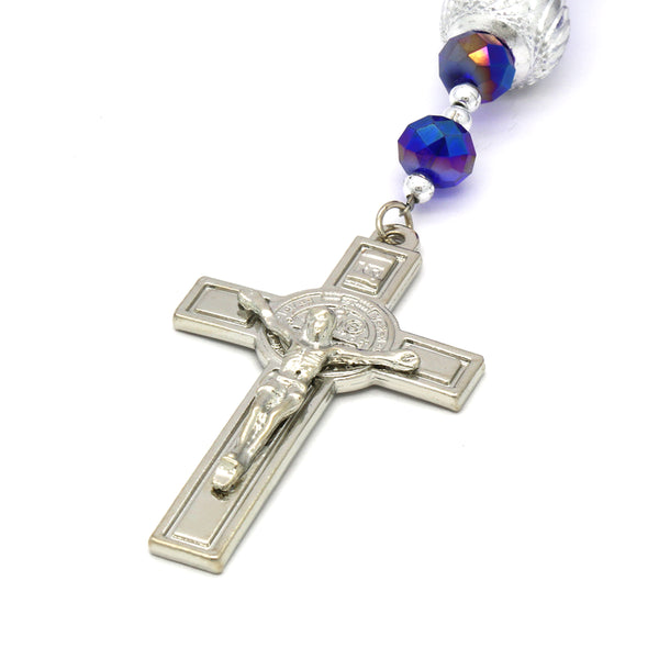 8MM Dark Blue Crystal Rosary With Cross Pendant