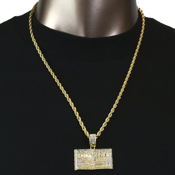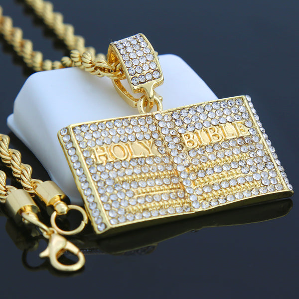 BIBLE PENDANT WITH GOLD ROPE CHAIN