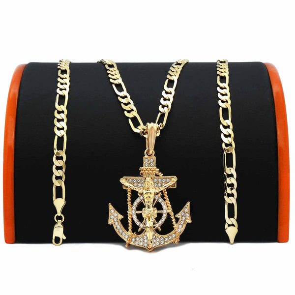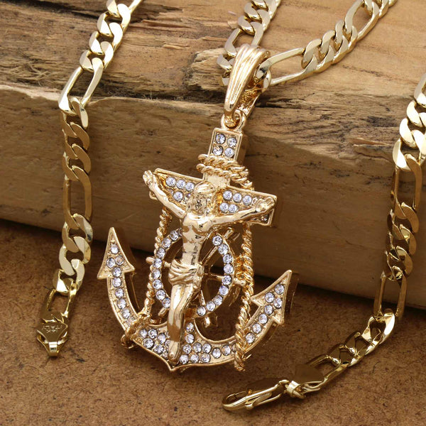 Anchor CZ Necklace Gold