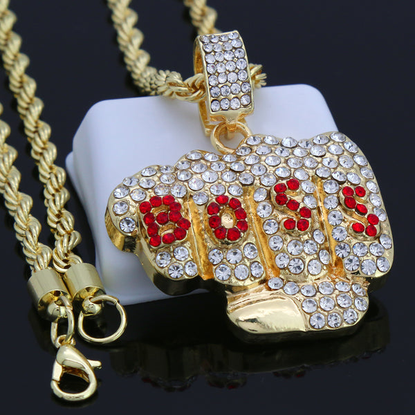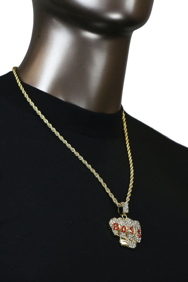 BOSS PENDANT WITH GOLD ROPE CHAIN