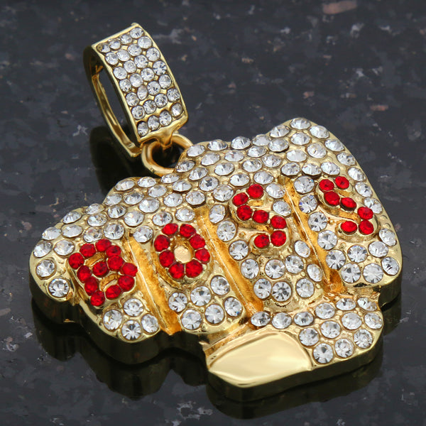 This listing is for One chain and Pendant Together. Color: Gold Size: Pendant--11/2" x 2" / Chain--4mm 24"Inches 14K Gold Filled Iced Out Boss Hip Hop Pendant with 4mm 24"...