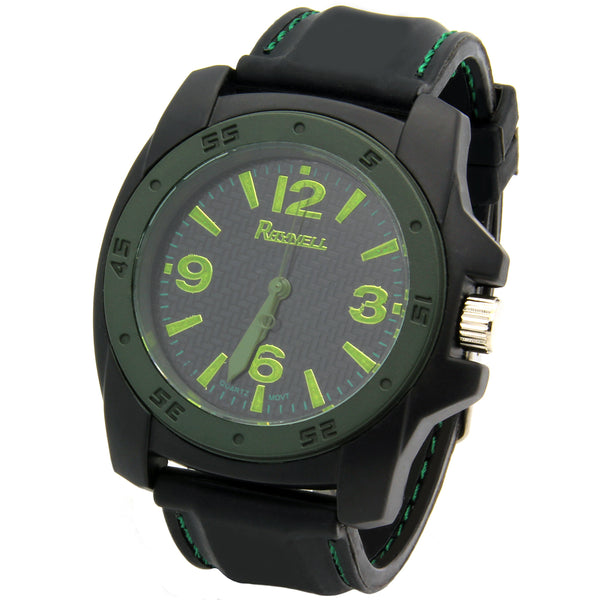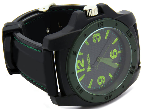 BlACK/Green Silicone Band Wrist Watch Big Size Face Diameter: 40mm Thickness: 10mm Stylish and trendy with scratch resistant mineral glass Bling Iced out bezel filled with lavish genuine Czech crystals High Quality Japanese...