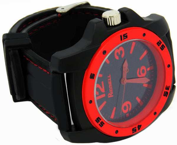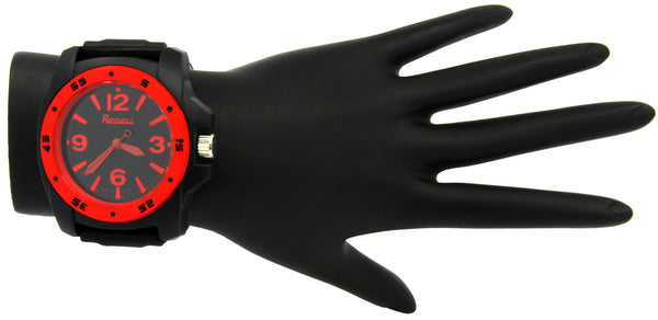 BlACK/Red Silicone Band Wrist Watch Big Size Face Diameter: 40mm Thickness: 10mm Stylish and trendy with scratch resistant mineral glass Bling Iced out bezel filled with lavish genuine Czech crystals High Quality Japanese...
