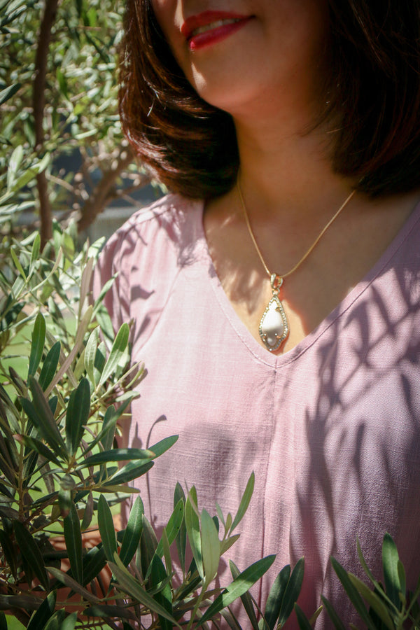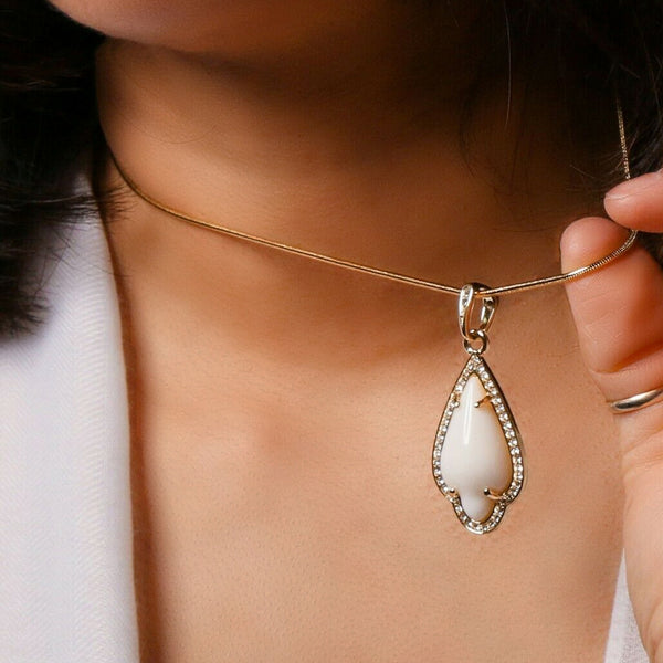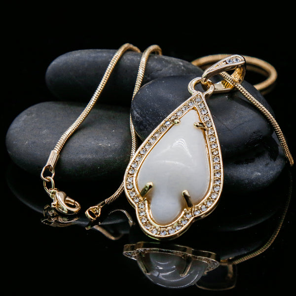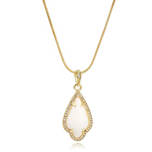 White Women's Pendants 14K Gold Plated Lab Diamond Mounted Curved Tear Resin Jade High Fashion Jewelry Chain Pendant Necklaces