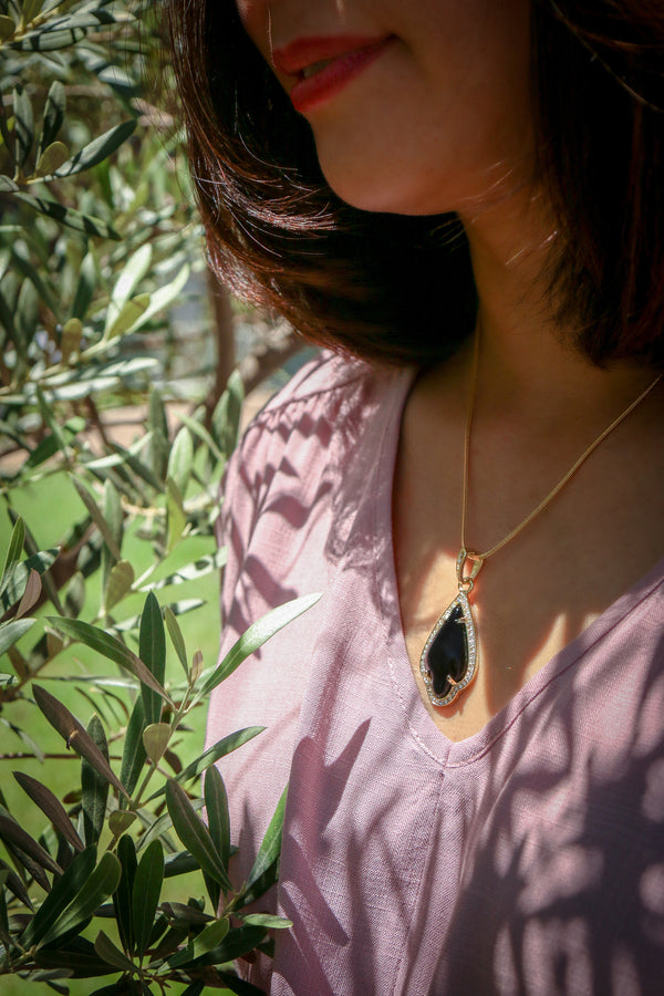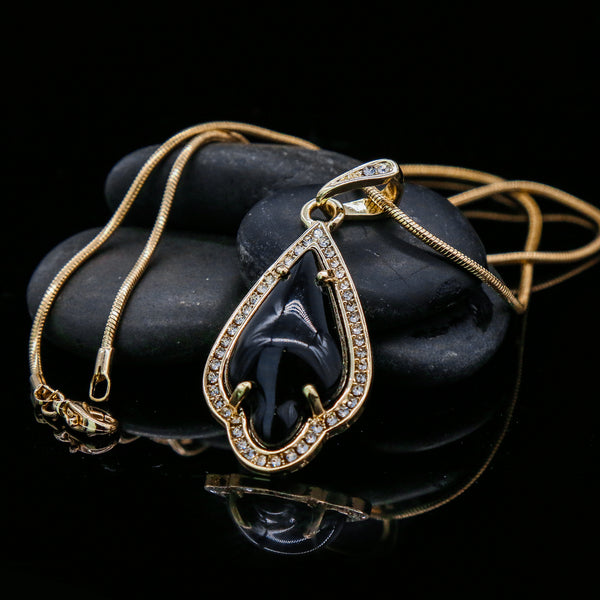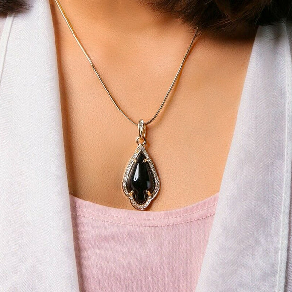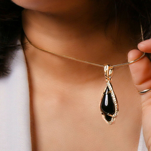 Black Women's Pendants 14K Gold Plated Lab Diamond Mounted Curved Tear Resin Jade High Fashion Jewelry Chain Pendant Necklaces