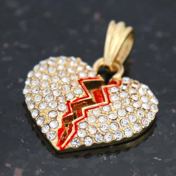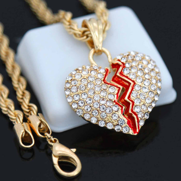 This listing is for One chain and Pendant Together. Color: Gold Size: Pendant--11/2" x 11/2" / Chain--4mm 24"Inches 14K Gold Filled Iced Out Broken Heart Pendant with 4mm 24" Rope...