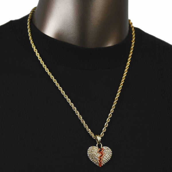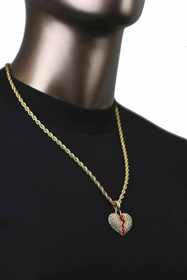 BROKEN HEART PENDANT WITH GOLD ROPE CHAIN