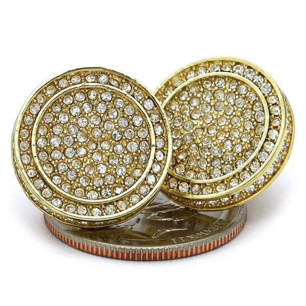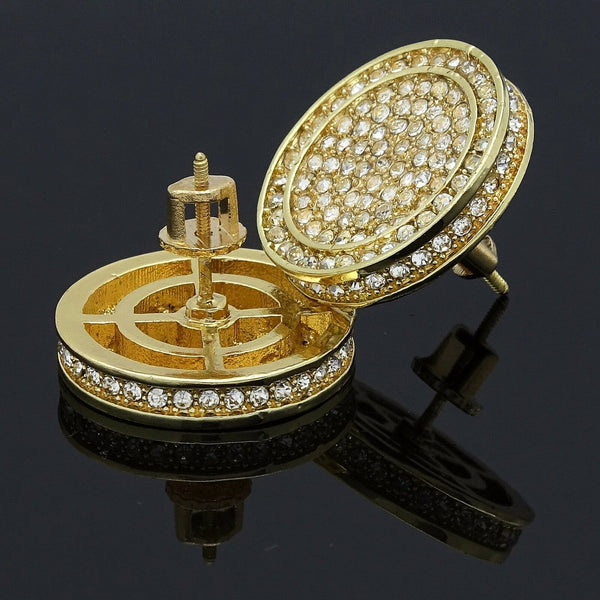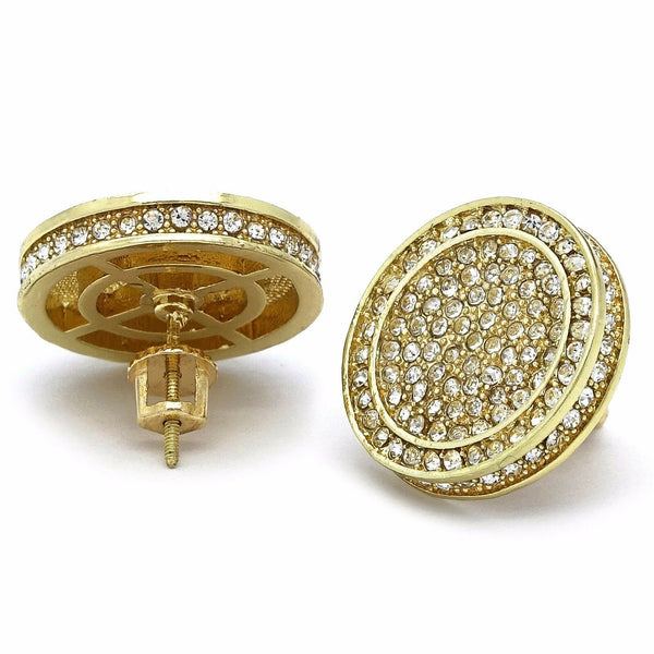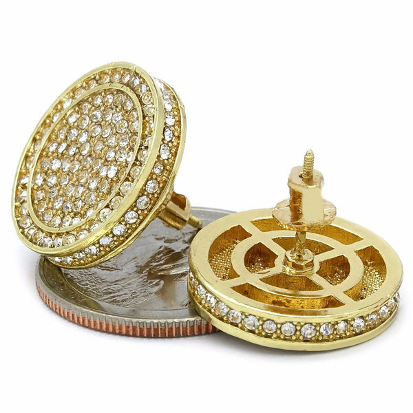 17mm Iced Out Circle Round Gold Filled and Cubic Zirconia Earring Measurements: 17mm Pierced Stud Earrings Screw backs To Make You More Shiny and Confident. Wherever You Go, The EARRINGS...