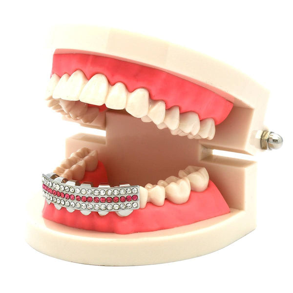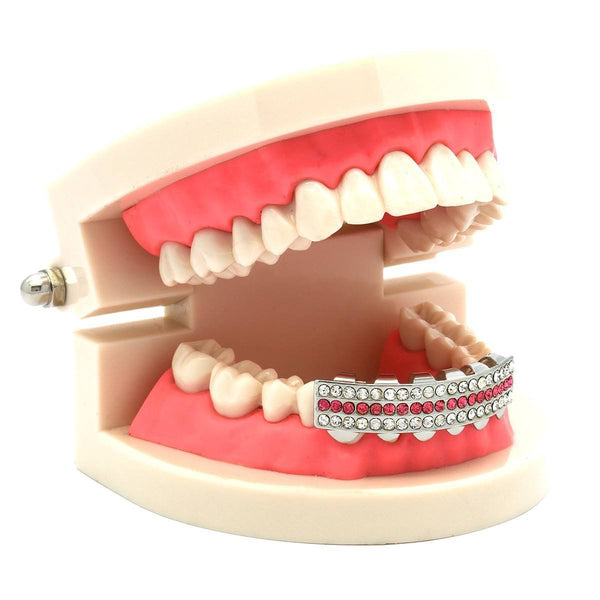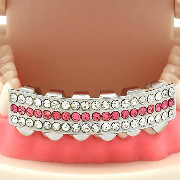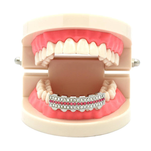 SILVER BOTTOM GRILLZ 3 ROW PINK