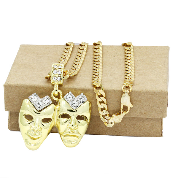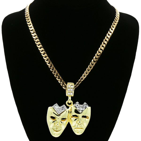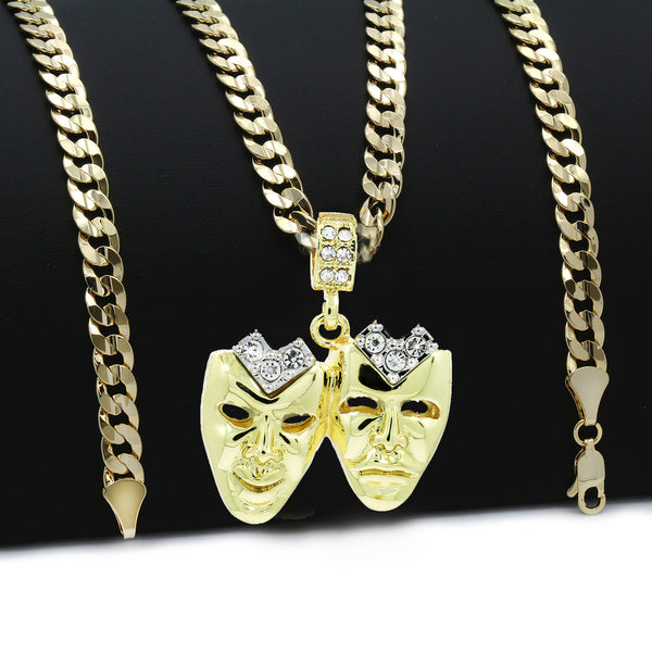 Hip Hop Bling 14K Real Gold Filled Necklace Pendant 14K Gold Filled Iced Out Cry-Smile Hip Hop Pendant with 5mm 24"Cuban Chain Gold Filled Over Brass Makes this Necklace Look...